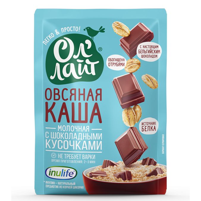 Одна порция овсянки быстрого приготовления; источник белка, пищевых волокон (100% инулина от средней суточной потребности) и медленных углеводов.