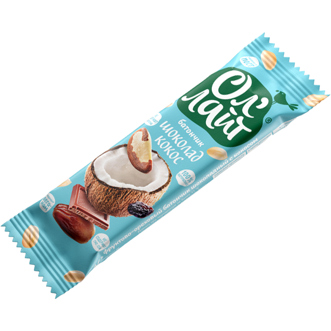 Состав: финики сушёные, изюм, бразильский орех, какао-порошок, кокосовая стружка, арахис жареный, тёмный шоколад. Может содержать незначительное количество других видов орехов, фрагменты косточек.